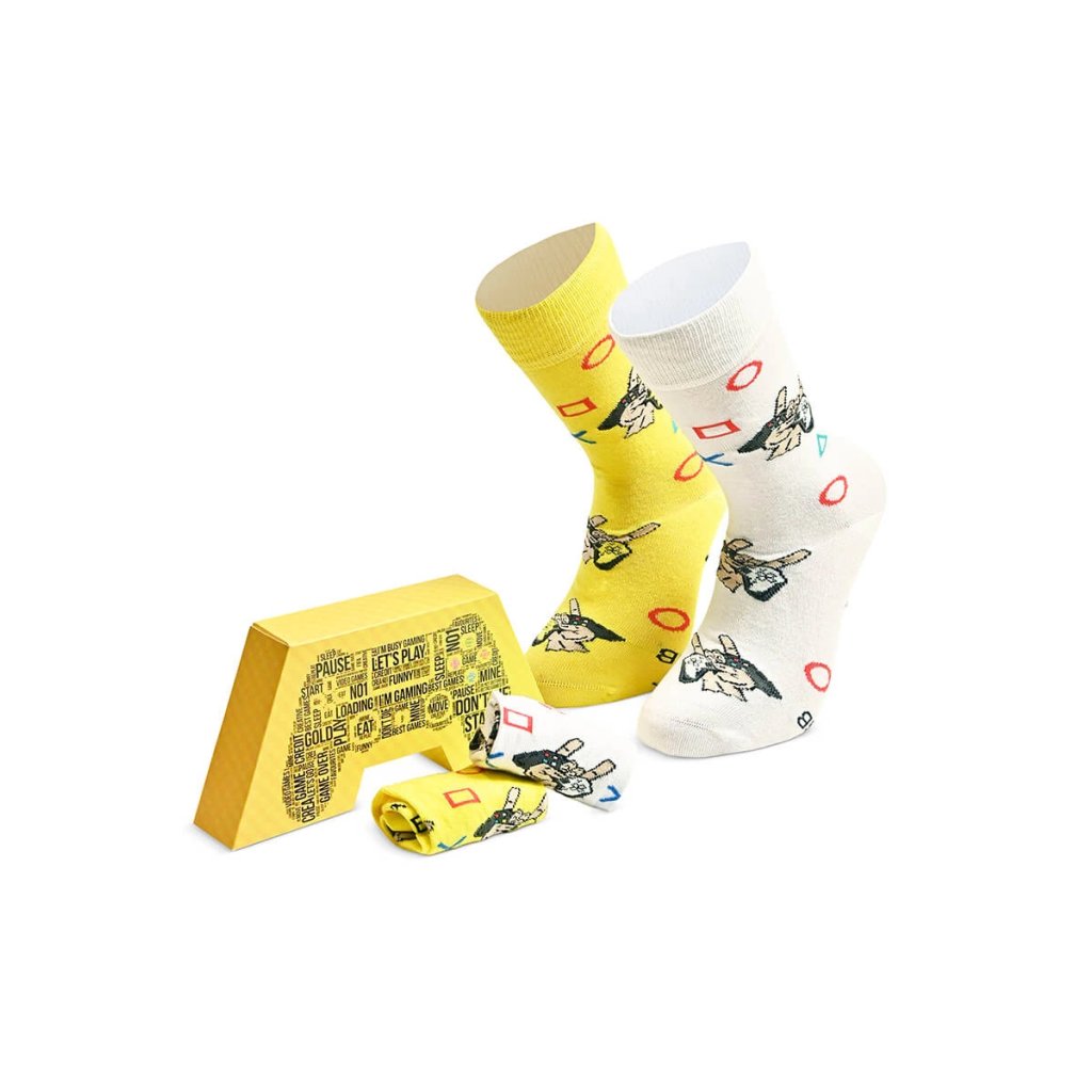 Herní atmosféra v každodenním provedení? S touto sadou ponožek vstupujete na vyšší úroveň stylu! Zde jsou 2 páry barevných ponožek s potiskem inspirovaným světem her. Celé to je zabalené v originální krabičce připomínající obal na gamepad, což dělá tuto sadu ideálním dárkem pro každého fanouška gamingu!
