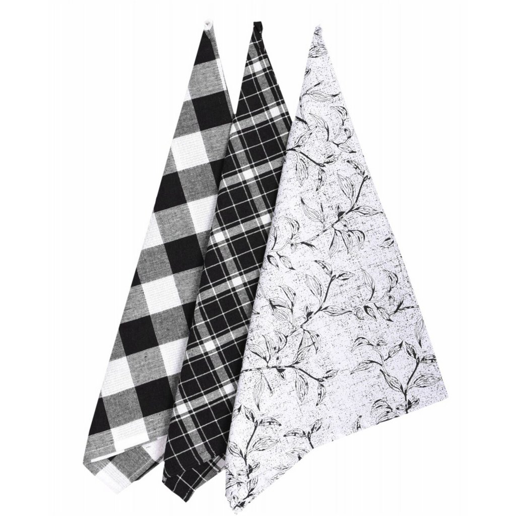 Sada tří krásných utěrek, které doladí každou kuchyni. Působí vkusně a elegantně.