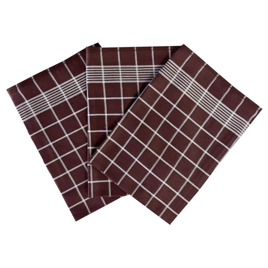 Utěrky 50×70 cm Pozitiv tmavě hnědá s bílým vzorem – kvalitní set 3 ks ze 100% egyptské bavlny