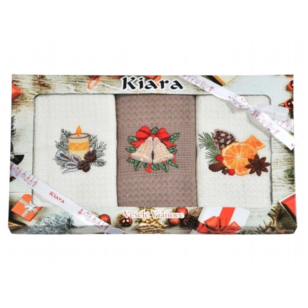 Vánoční dárková sada utěrek 50x70 Krémová a hnědá 3 ks