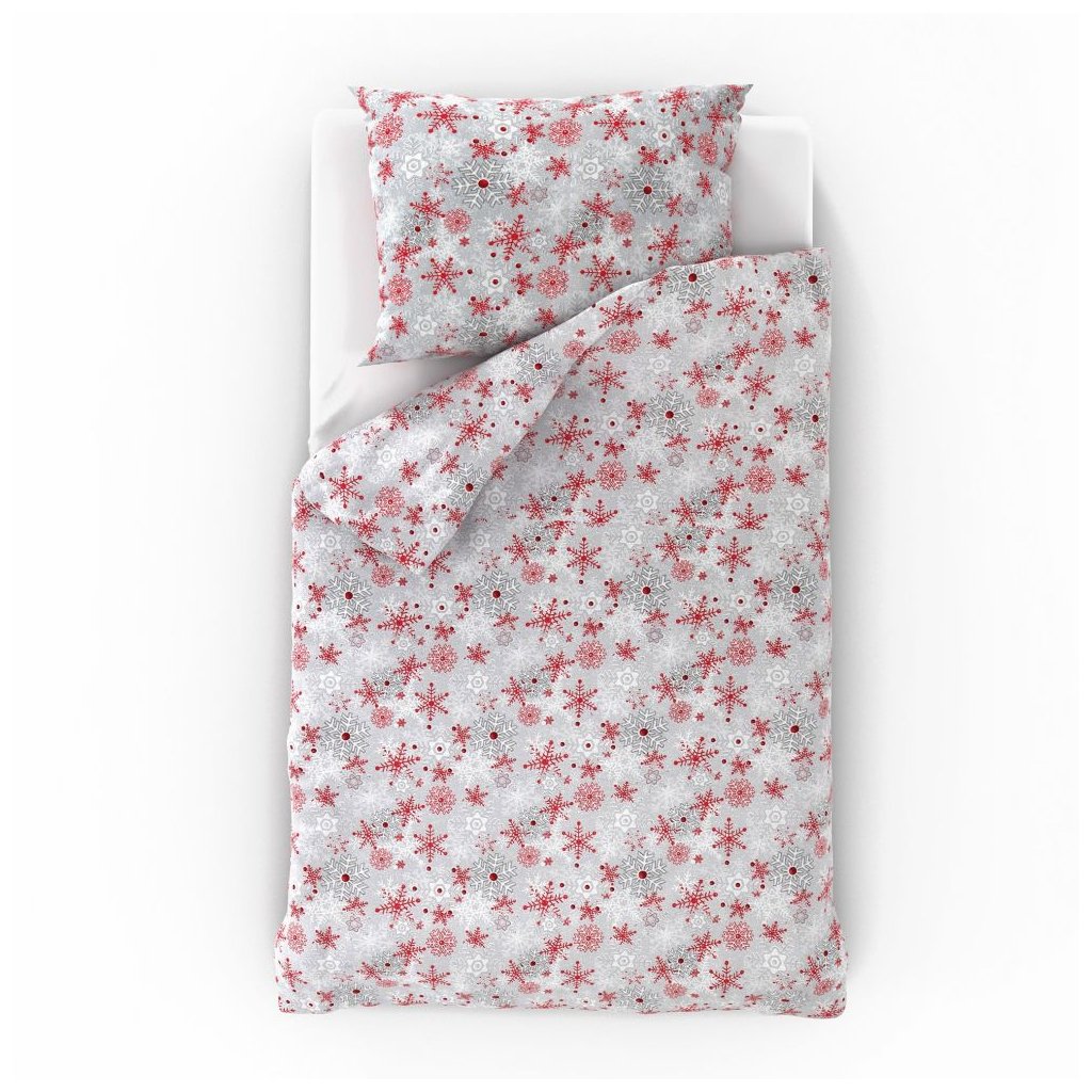 Vánoční flanelové povlečení 140x200, 70x90cm VLOČKY červenošedé