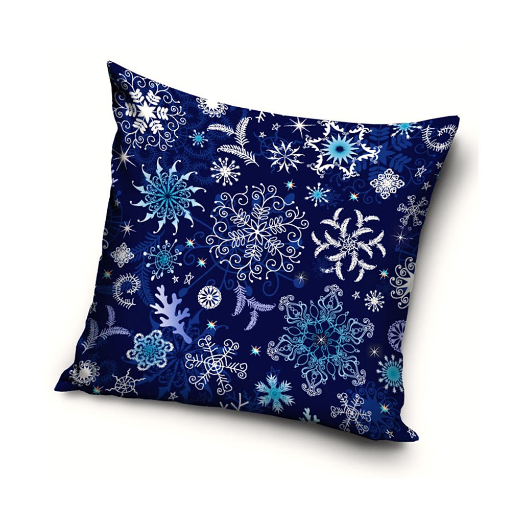 Kombinace temně modrého pozadí a světlých odstínů vloček působí elegantně, klidně a slavnostně, díky čemuž se povlak skvěle hodí do zimně laděných či vánočně vyzdobených interiérů