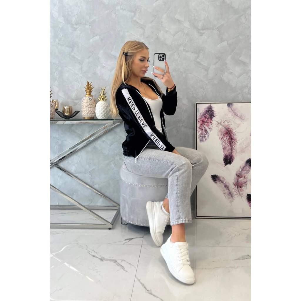 Velurová mikina s kapucí černá