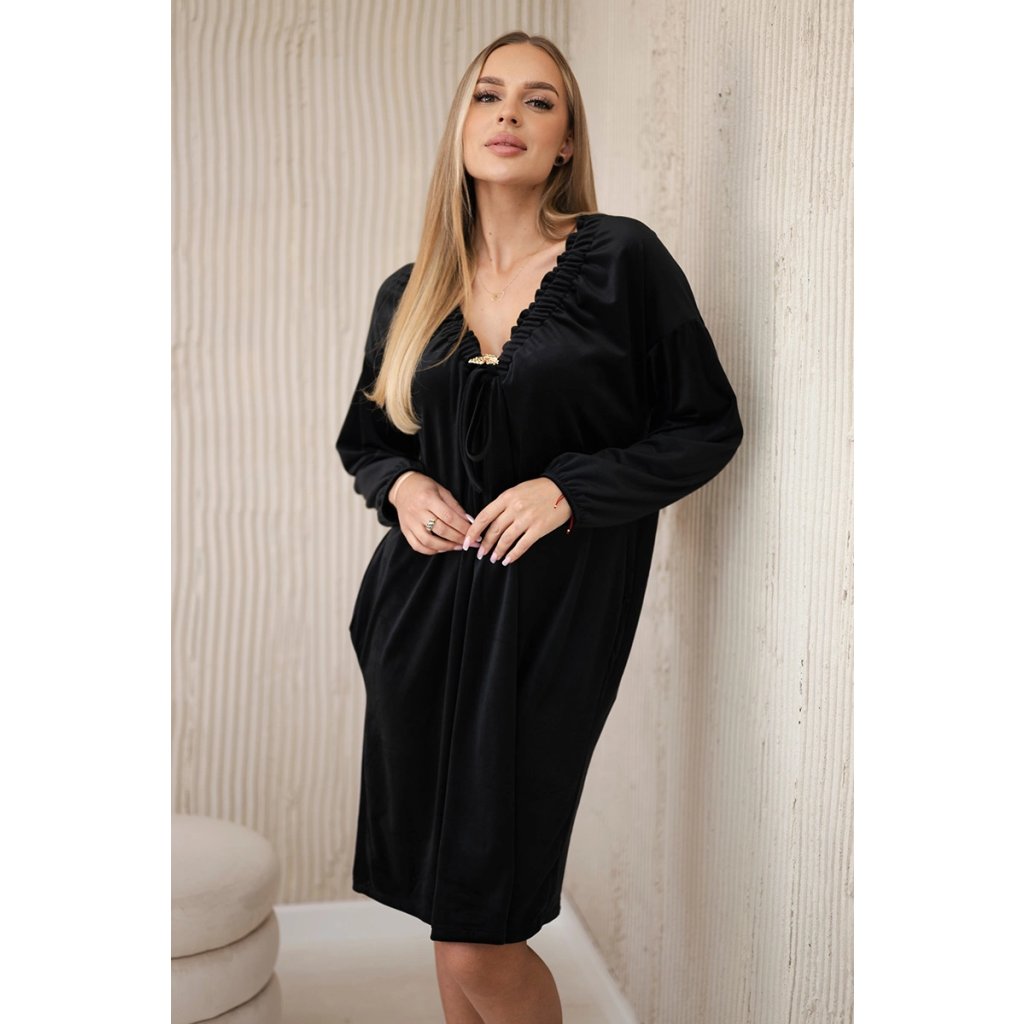 Velurové šaty s páskem jsou elegantní a pohodlná varianta, ideální pro různé příležitosti. Vyrobeno z měkkého, lehce lesklého sametu, zajišťuje pohodlí při nošení a stylový vzhled. Šaty mají praktické kapsy, které dodávají funkčnost a výstřih ve tvaru V, který zvýrazní krk a dekolt. Šaty jsou doplněny páskem v pase, který umožňuje dokonalé přizpůsobení postavě, a navíc mají jemný potisk, který jim dodává jedinečný charakter. Je to skvělá volba pro večery, schůzky nebo formálnější příležitosti. Velikost je univerzální a bude vhodná pro ženy, které nosí velikost S, M nebo L.