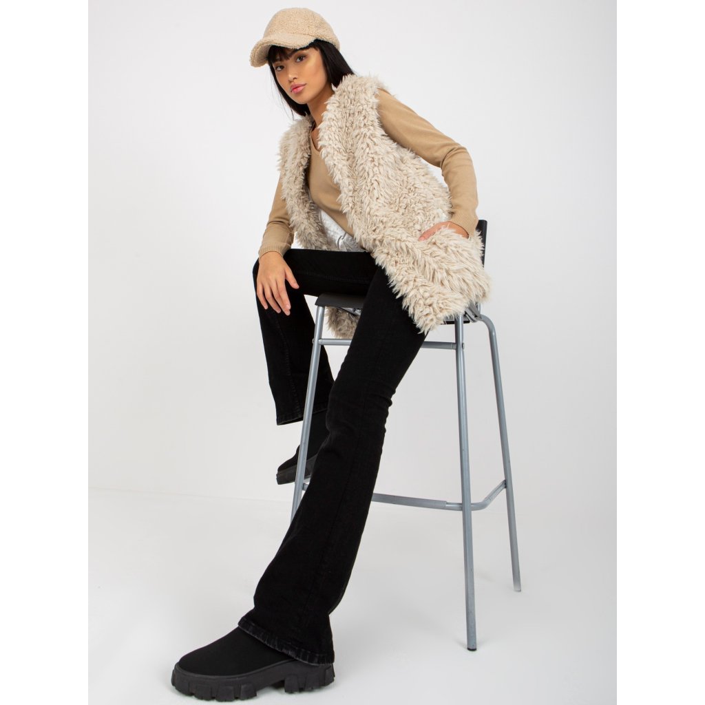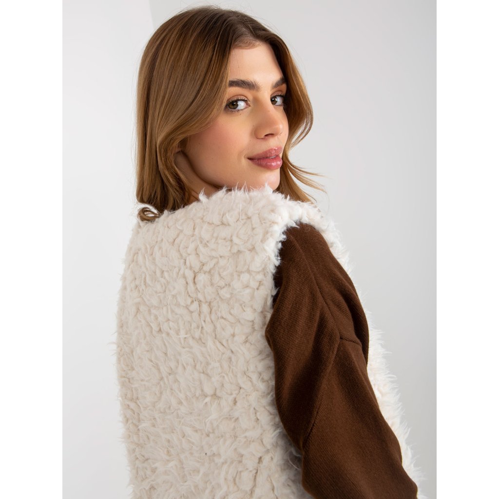 Kožešinová vesta v ecru barvě s kapsami, Hallie.