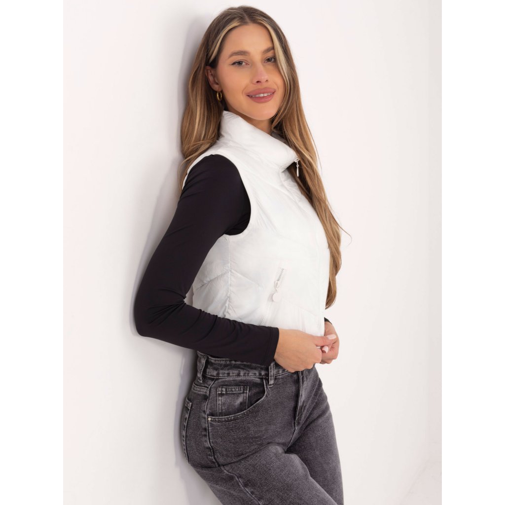 Krátká prošívaná vesta v ecru barvě s kapsami.