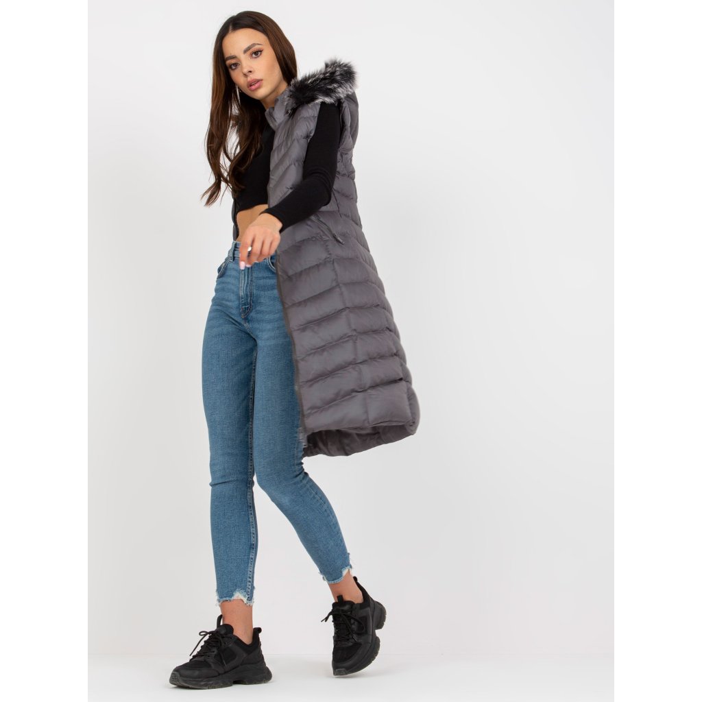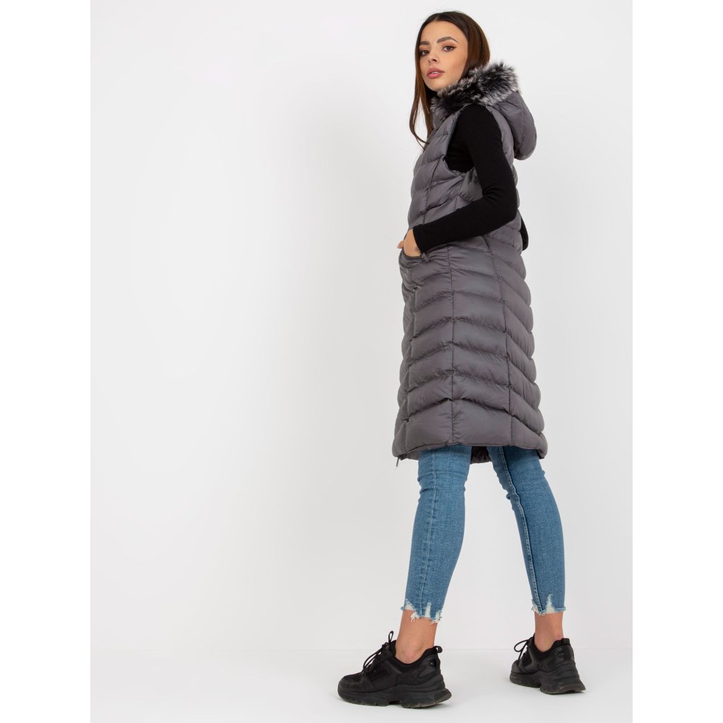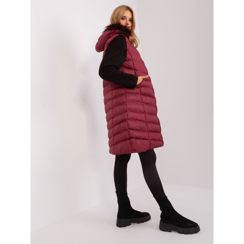 Hnědá dlouhá péřová vesta s kapucí od RUE PARIS.