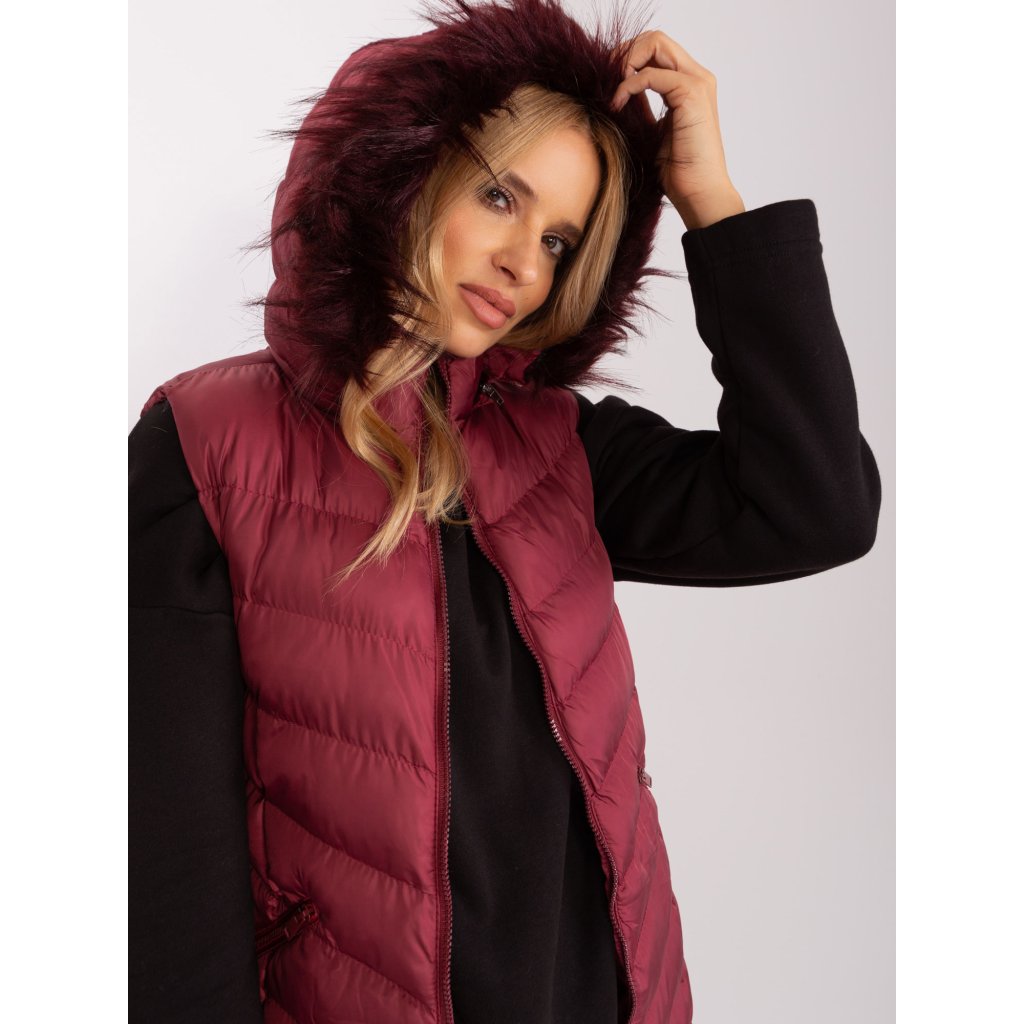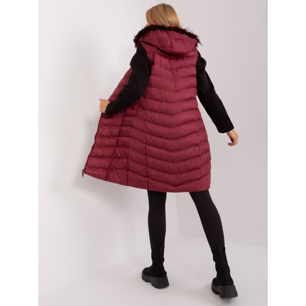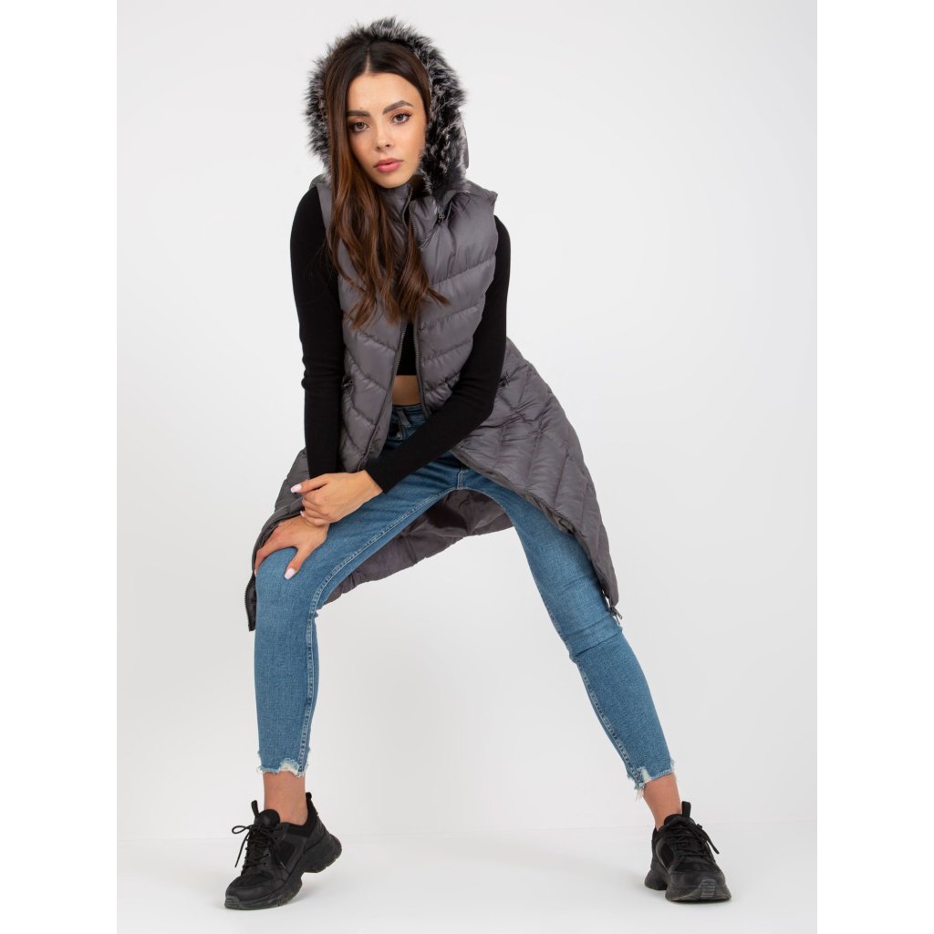 Hnědá dlouhá péřová vesta s kapucí od RUE PARIS.