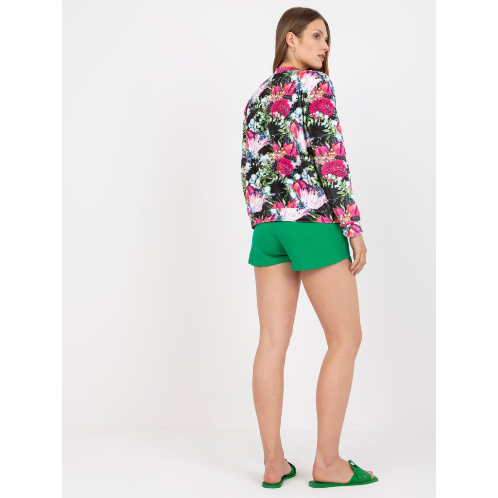 Lesklá viskózová mikina bomber s potiskem se skvěle hodí na každodenní nošení, do města, na procházku či jiné příležitosti. Mikina je vyrobena z kombinace 90% viskózy a 10% elastanu a vyznačuje se designem a pohodlným střihem.Modelka má na sobě velikost S/M.