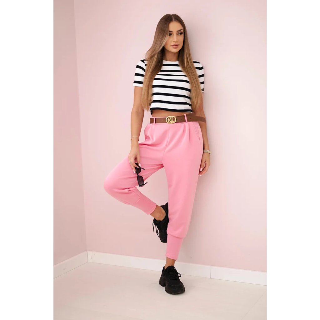 Elegantní kalhoty s páskem jsou ideální volbou pro ženy, které si cení kombinace klasického vzhledu a praktičnosti. Díky elegantnímu pásku se dokonale přizpůsobí postavě, zdůrazní pas a dodají postavě proporce. Tyto kalhoty jsou ideální pro každodenní i formální stylizace. Kombinujte je s košilí a podpatky pro elegantní vzhled do práce nebo s blůzou a teniskami pro ležérní každodenní styl.