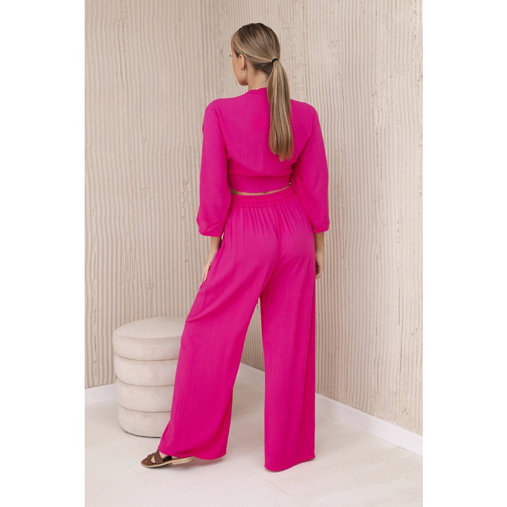 Viskózový komplet, dole zavazovaná halenka + kalhoty růžový