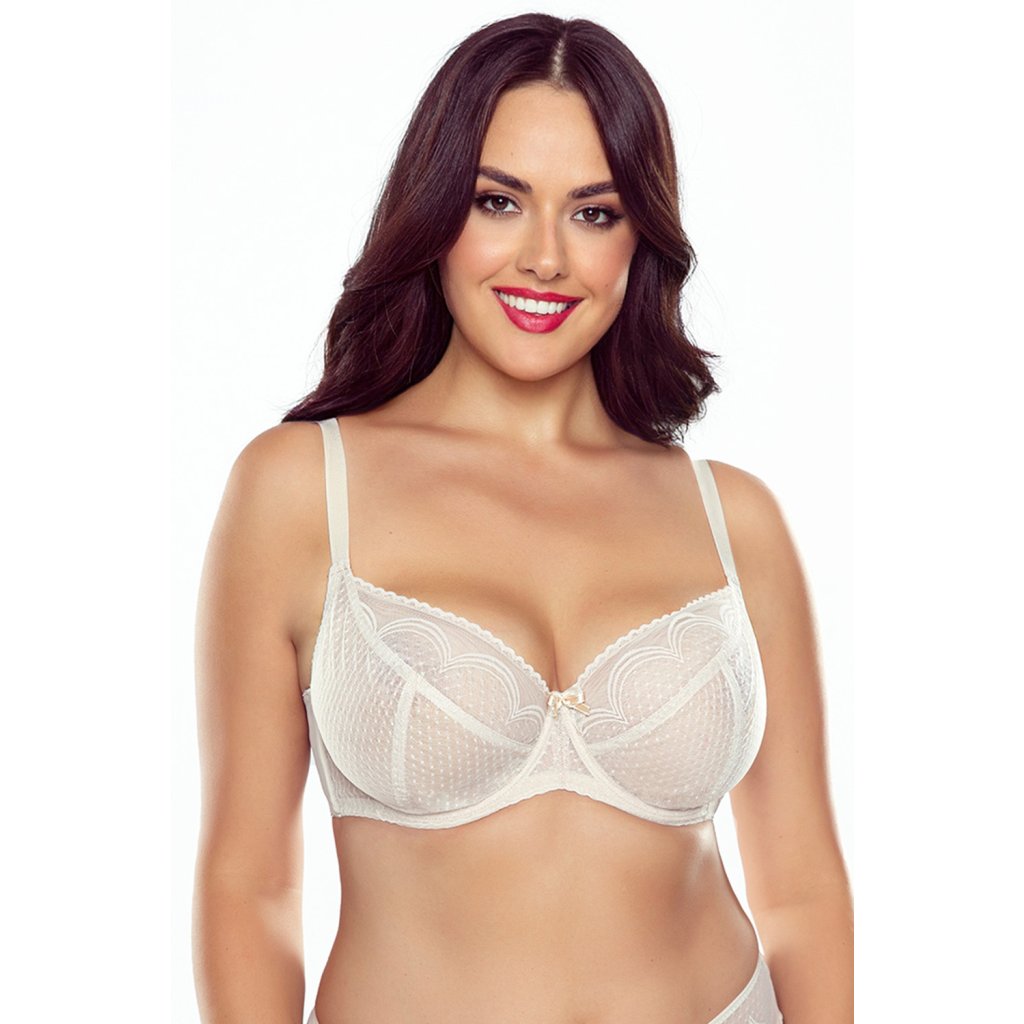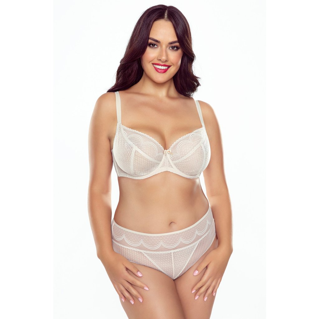 Vivisence podprsenka. Model 1050. Má kostice, které podpírají ňadra a vhodně je tvarují. Svislé kostice zasazené po stranách. Produkt má nastavitelná ramínka, která nelze odepnout. Kovové háčky na ramínkách. Podprsenka se zapínáním na háčky. Místo upevnění: vzadu. Dvě řady vertikálních háčků. Tři úrovně horizontálních háčků. Výrobek je vyroben z 52% polyamidu, 28% polyesteru, 12% nylonu, 8% elastanu.Doplňkové parametry