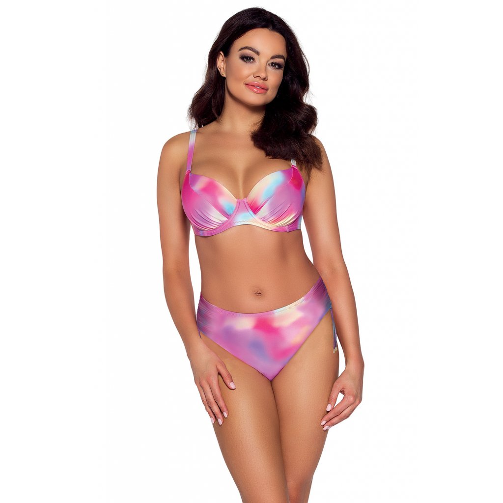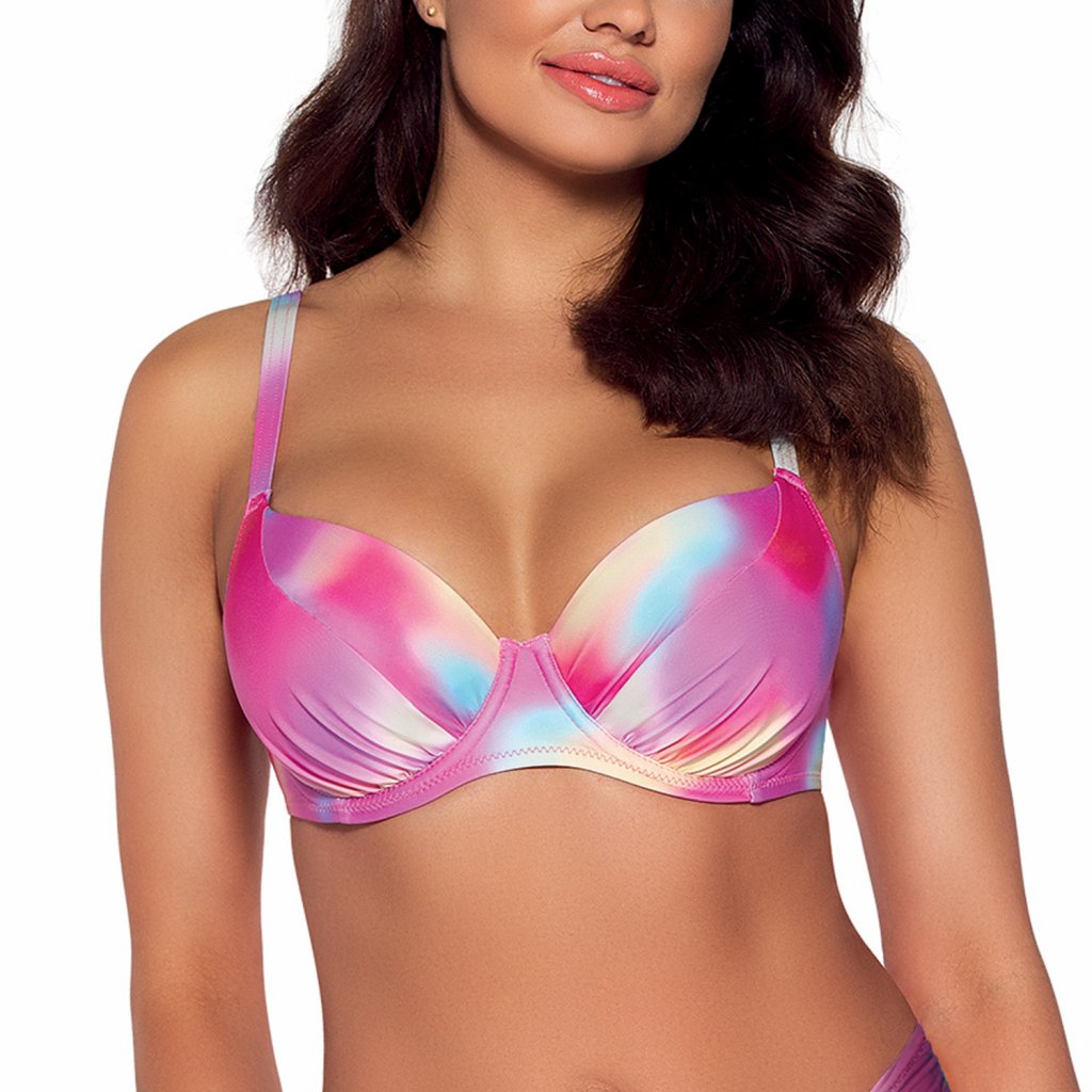 Vrchní díl plavek s vyztuženými košíčky.- jemné řasení použité ve spodních partiích opticky zvýrazní ňadra
