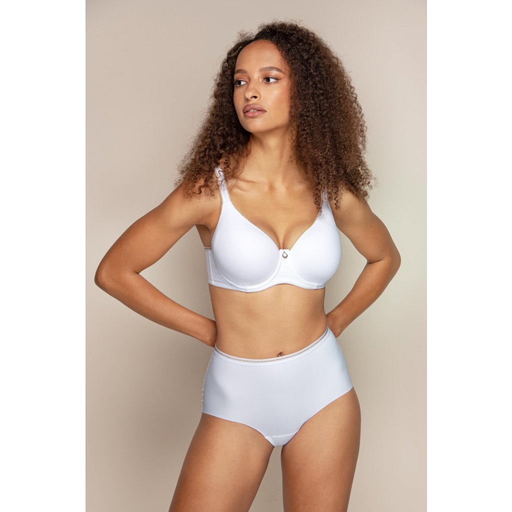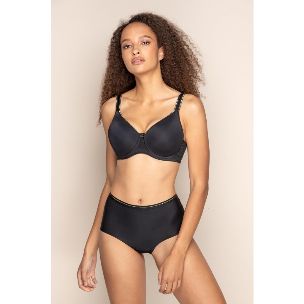 V kolekci Golden Hour nechybí ani naše nejprodávanější podprsenka střihu DreamBra. Tento střih je ideální především pro větší prsa. Vyznačuje se jemnou výztuží a vyšším středem, které poprsí nezvětšuje, ale dodá jim pevný kulatý tvar. Obvod celé podprsenky je zdoben jemným zlatým lemem.