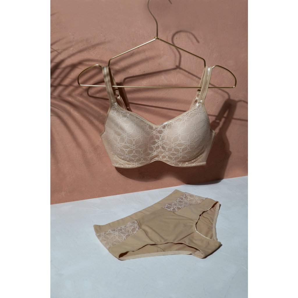 Bestseller v nové kolekci. Nejoblíbenější střih podprsenky BeautyBra s lambádou z květinového tylu v kolekci First Class. Vyztužené bezešvé košíčky jsou potaženy jemným elastickým tylem, který překrývá vykrojení ve středu podprsenky. Nabízí tak hluboký dekolt, ale zároveň udrží prsa díky průhlednému překrytí tylem na svém místě.