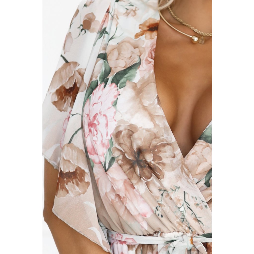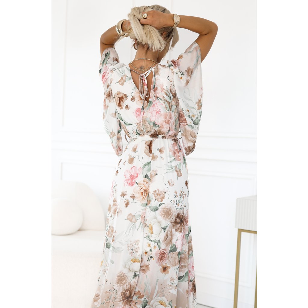 Vzdušné zavinovací maxi šaty s květinovým vzorem - béžové růže 603-2