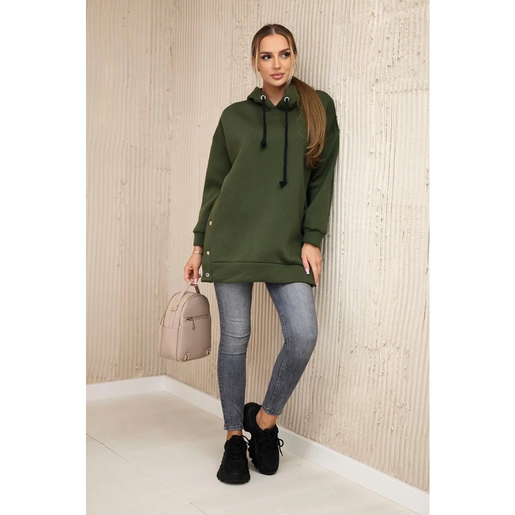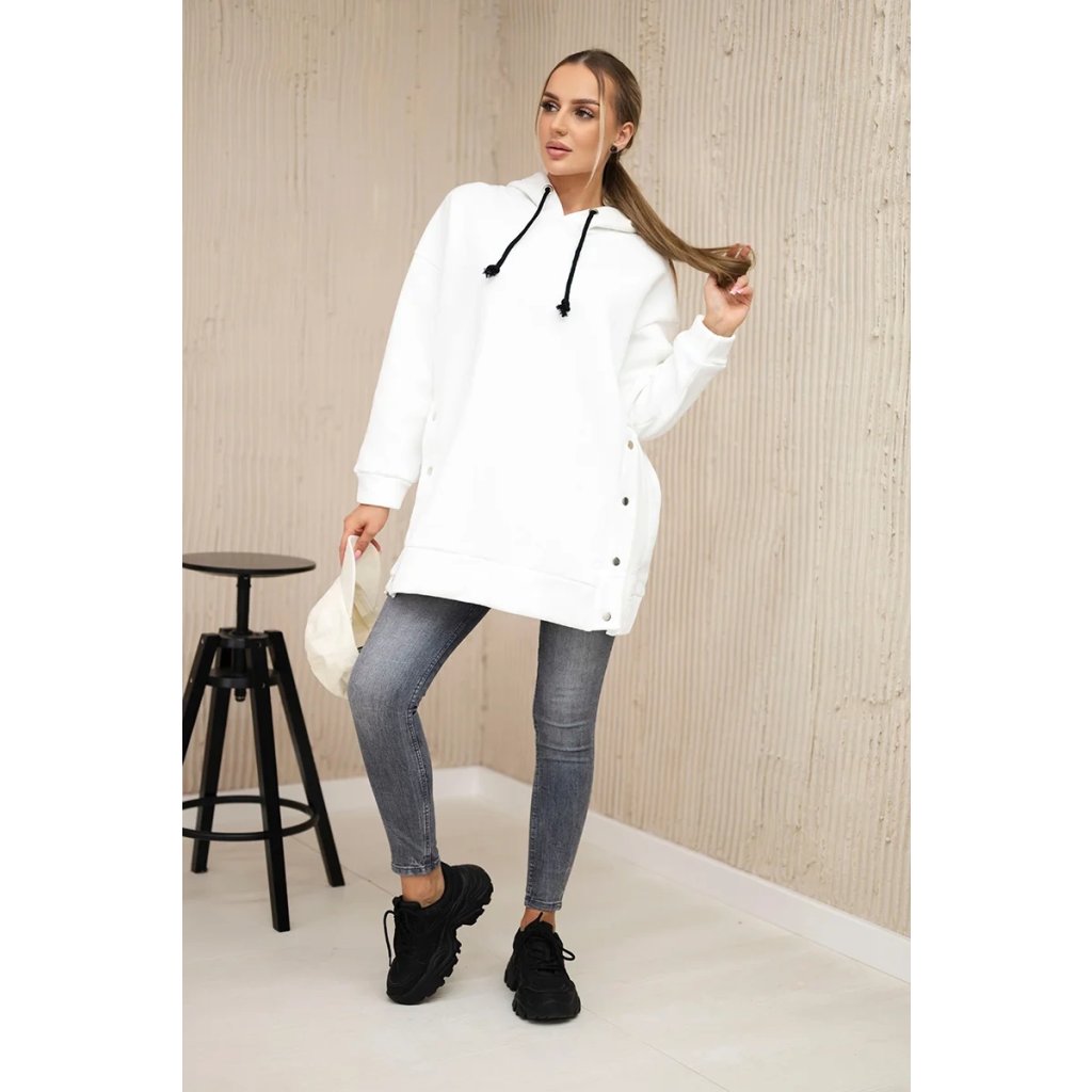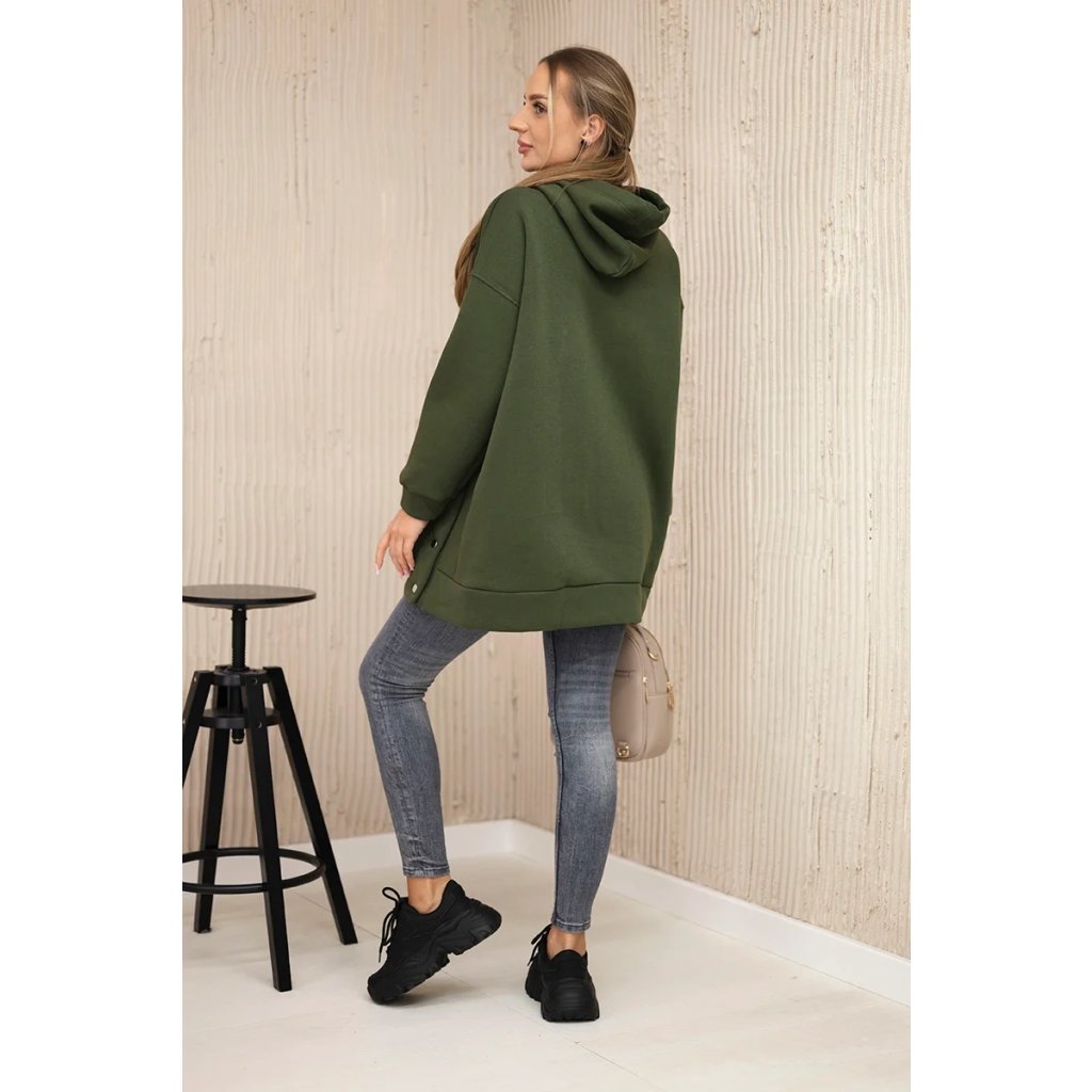 Představujeme vám zateplenou mikinu. Mikina má kapuci a zapínání na druky po stranách. Mikina je vyrobena ze zatepleného materiálu. Velikost je univerzální a vyhovuje dámám, které nosí velikost S, M nebo L.