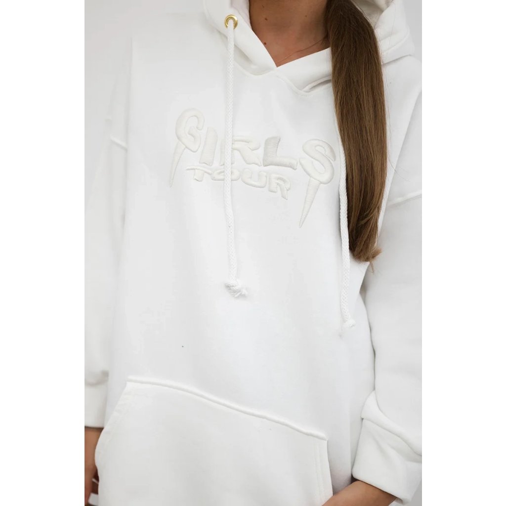 Představujeme vám mikinu oversize. Mikina má kapuci a vyšívaný nápis Girls tour. Na přední straně je našitá kapsa. Mikina je vyrobena ze zatepleného materiálu. Velikost je univerzální a vyhovuje dámám nosícím velikosti M, L, XL.