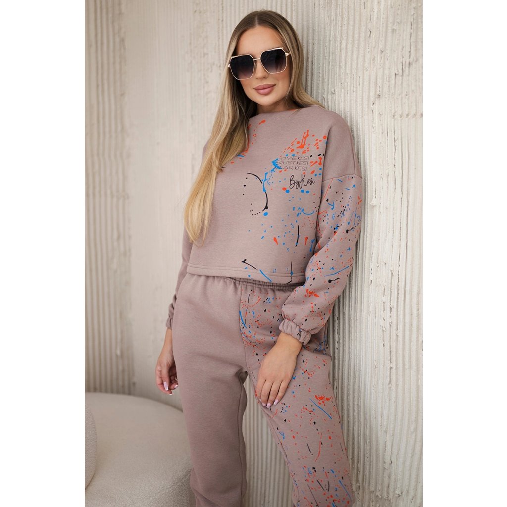 Představujeme vám zateplenou soupravu mikiny a kalhot. Mikina a kalhoty s barevným potiskem. Sada je vyrobena z izolovaného materiálu.