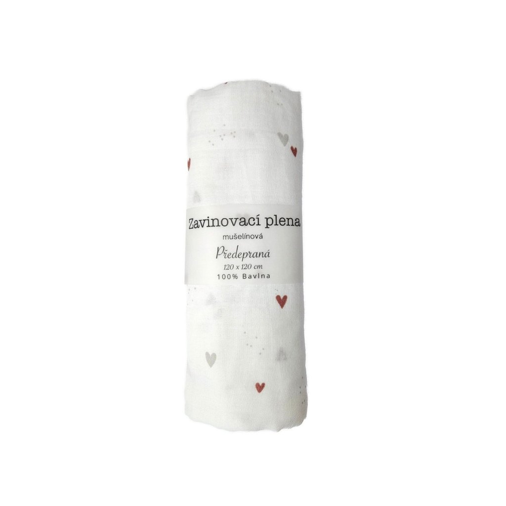 Zavinovací plena 120x120 cm Karamelová srdíčka (balení 1 ks)