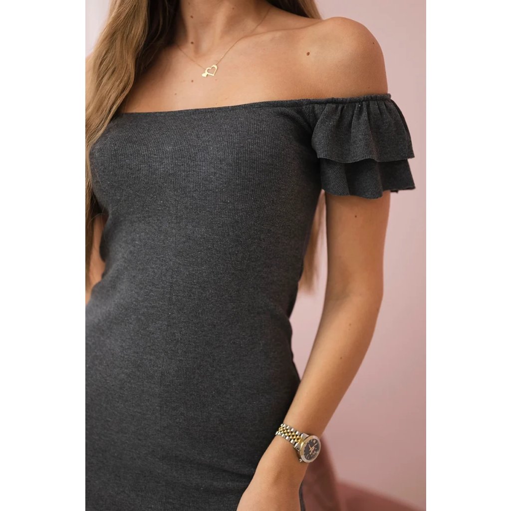 Představujeme vám módní šaty. Šaty mají na ramenou volánky. Přiléhavé šaty z žebrované tkaniny. Šaty jsou vyrobeny z vysoce kvalitního materiálu. Velikost je univerzální a vyhovuje dámám, které nosí velikost S, M nebo L.