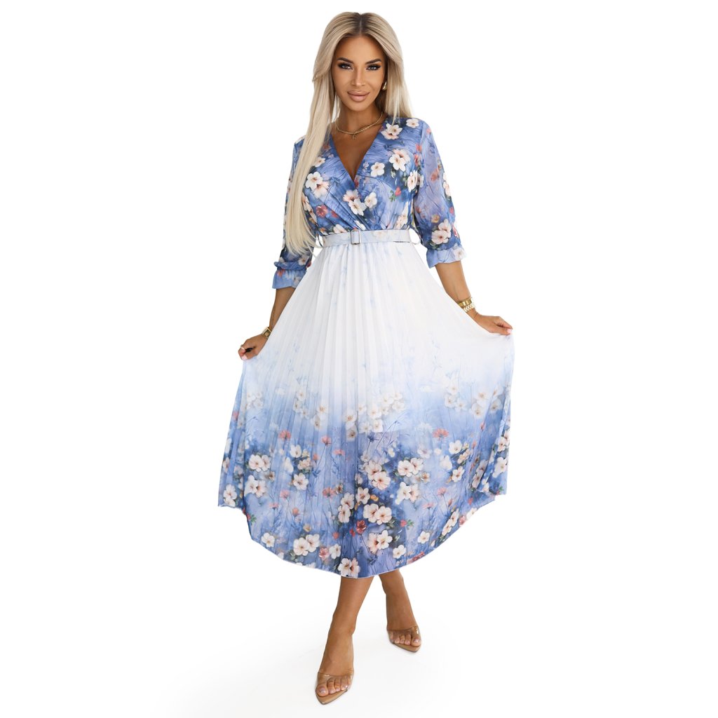 Vzdušné plisované midi šaty s květy – romantický look na každý den a na výjimečné příležitosti