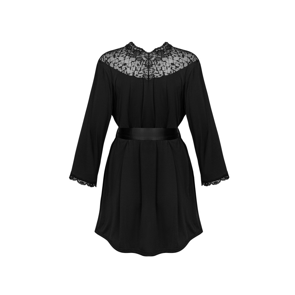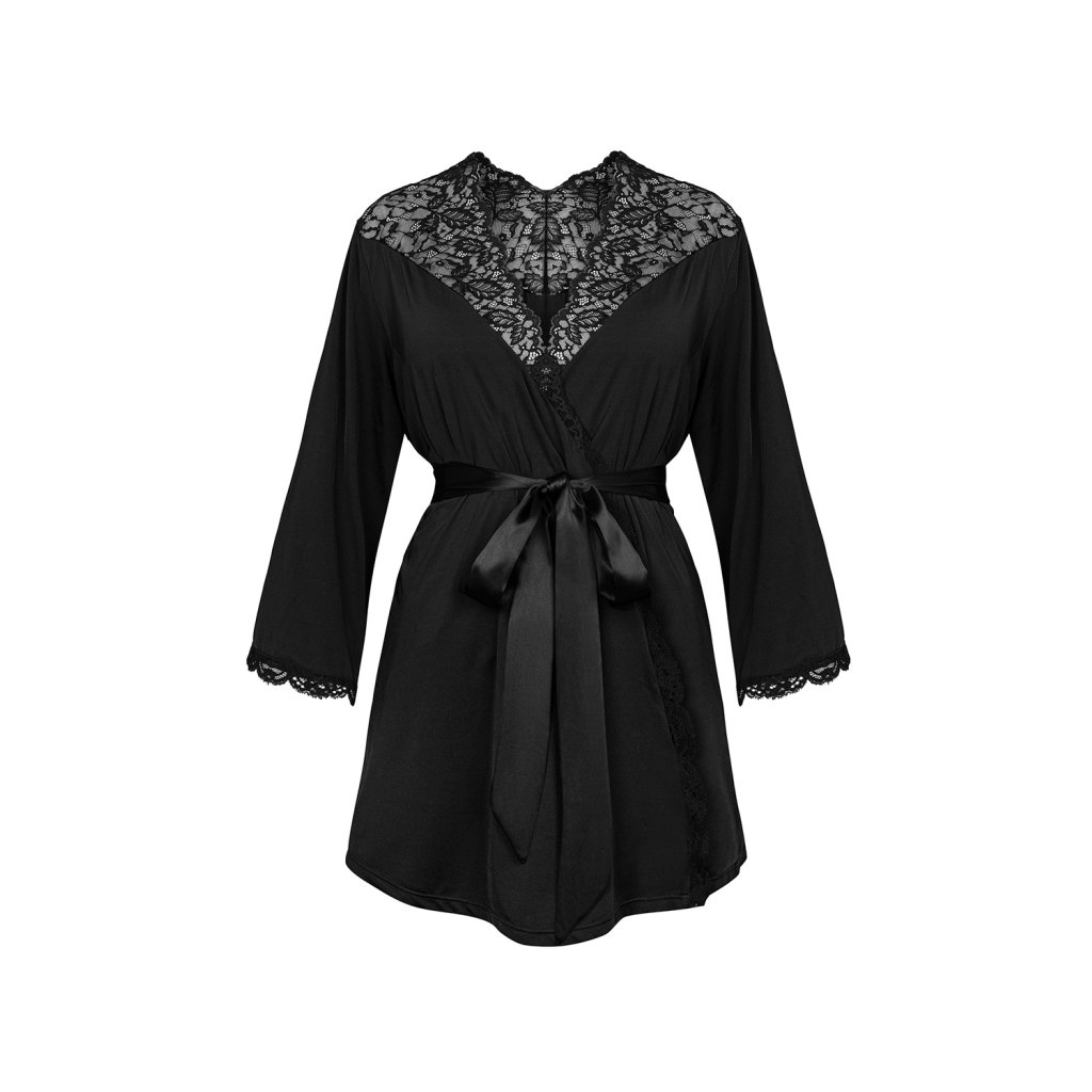 Elegantní saténový župan - 3/4 rukáv - záda a rukávy jsou zdobeny ažurovými krajkovými vsadkami